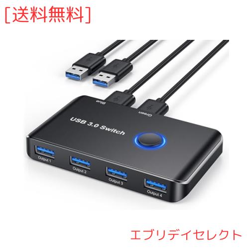 切替器 ABLEWE USB切替器 5Gbps高速転送 PC2台用 4USBポート プリンタ マウス キーボード WEBカメラ ハブなどを切替 手動切替器 USBケー