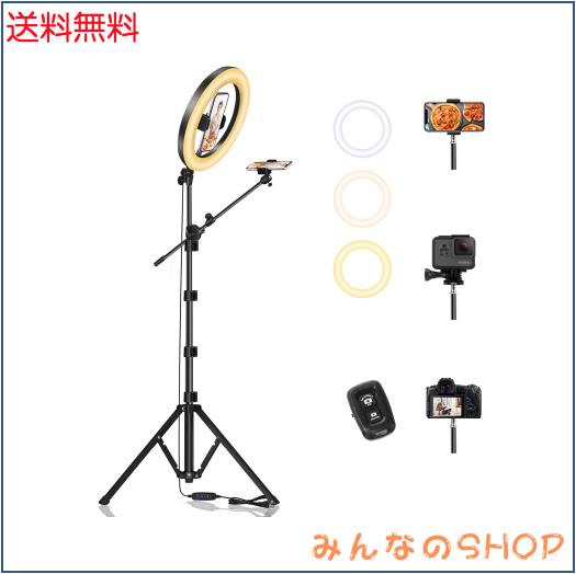 ◆商品名:LUXSURE リングライト 三脚 俯瞰撮影 スマホスタンド ライト付き 10インチ スマホ 三脚 ライト付き 撮影用ライト 3色モード10段調光 撮影