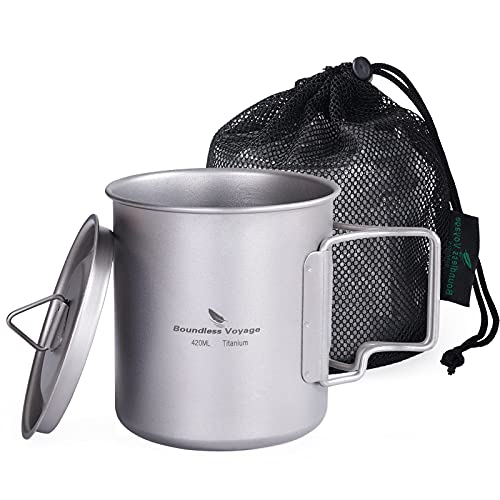 Boundless Voyage チタンマグカップ 420ml シングルカップ チタンコップ キャンピングカップ アウトドア カバ 蓋付き Ti3025D
