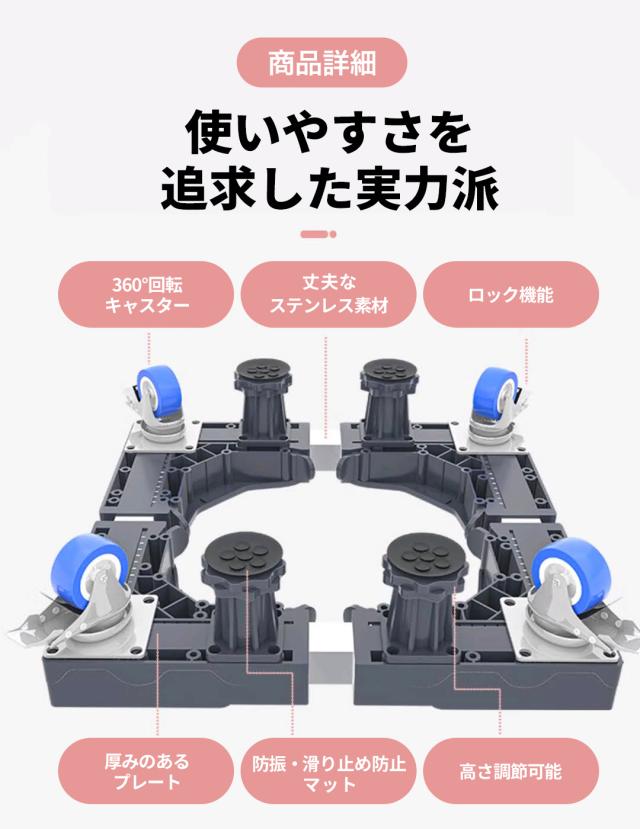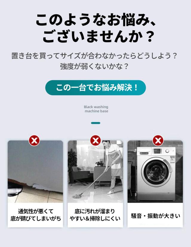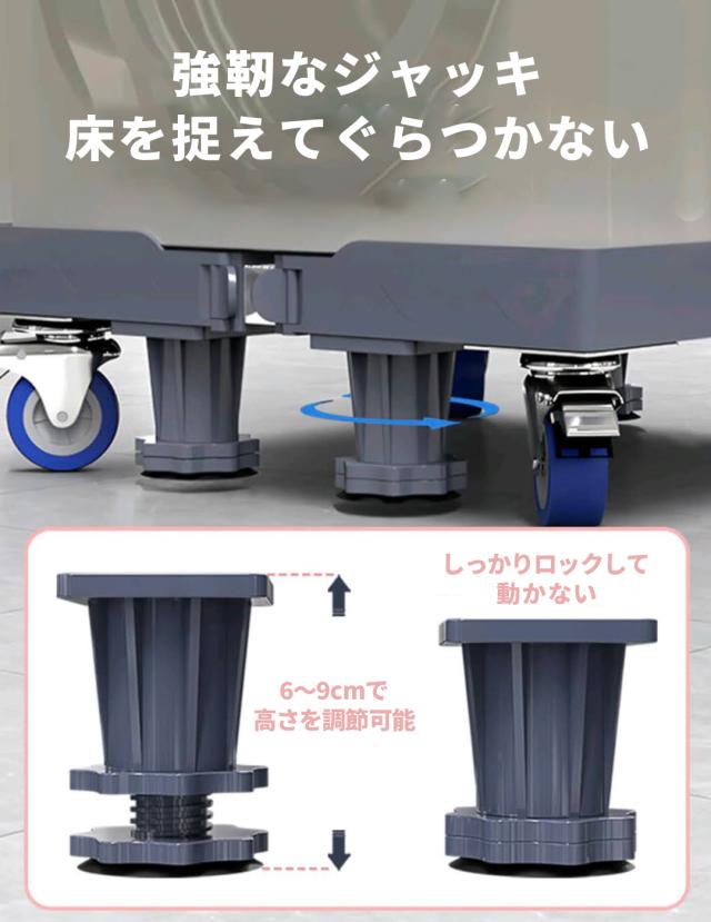 洗濯機 置き台 かさ上げ台 キャスター キャスター付き 黒 60cm かさ上げ 洗濯機置き台 底上げ スライド台 ドラム式 縦式 振動防止 騒音防止 伸縮式 防振 ズレ防止
