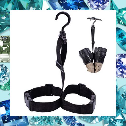 使いやすい:ブーツをループに入れ、バックルでストラップを調整し、吊り下げます。