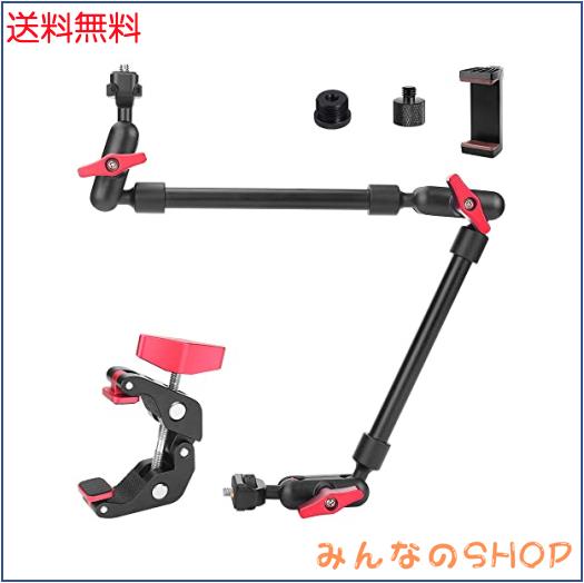 ??【仕様&注意】?【商品仕様】スーパークランプ:2点1/4ネジ穴+1点の3/8ネジ穴、 マジックアーム:全長-22インチ、取付ネジ:1/4ネジ 全体の耐荷重:約0.25?まで 「パッケージ内容」改良型のスーパークランプ*1 マジックアーム*1 1/4転3/8ネジアダプタ*1 1/4転5/8ネジアダプタ*1 スマホクリップ*1; ?ご注意:※※ご注意:付属のスマホクリップやGopro用マウントは緩々固定できない時に、マジックアームの1/4ネジに丸座金を組み合わせてから締めてください。
