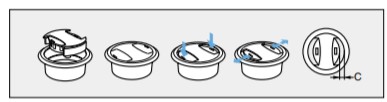 ●a部を押し込んでスライドさせることで、配線を通す口を開け閉めできます。