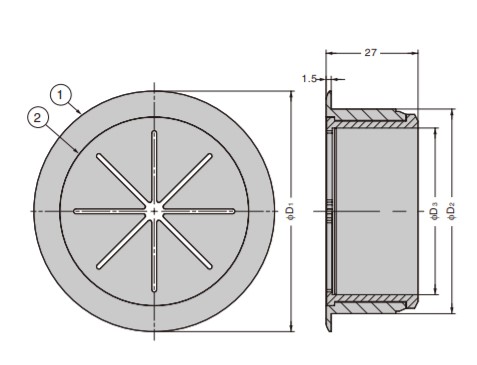 SUGATSUNE スガツネ工業 配線孔キャップ SF型 210-037-250 SF70BR | LAMP SF型 取り付け カバー 配線 コード ケーブル 収納 整理 デスク テーブル パソコンデスク テレビ台 ベッド 天板 オフィス 食器棚 建築 家具