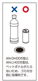 ●AN-DH005型とAN-LH005型は、ペットボトルが入らないため、ゴミの分別に効果的です。