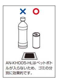 ●AN-KH005-HLはペットボトルが入らないため、ゴミの分別に効果的です。
