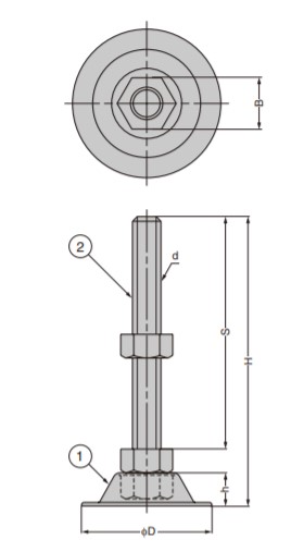 ●受皿底部から六角ナットを圧入しているため、インパクトレンチなどで簡単に取り付けできます。 ●豊富なサイズバリエーションをそろえているため、用途に合わせてお選びいただけます。 【別売品】 ●アジャスター押え金具ADZS型(ステンレス鋼製) ●アジャスター押え金具ADZ型(鋼製) 参照ページ?:P.829 製品内容は、部品としての品質範囲です。この部品を使用した最終製品の機能・性能・安全を保証するものではありません。 【ADP型】鋼製 材料:(1)本体:鋼 (2)ねじ部:鋼 色: 仕上:(1)本体:光沢クロメート処理 (2)ねじ部:光沢クロメート処理 サイズ:d:D:H:h:S:B M10:37:67.5:10.5:50:17 耐荷重N:2940 耐荷重kgf:300 重量:80g 注文コード: 200-140-594 品番:ADP37-10-50 ※画像はイメージです。 ※パッケージ、仕様、品番などの変更が予告なく変更される場合が御座います。 カテゴリー |