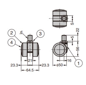 SUGATSUNE スガツネ工業 キャスター GX-W50GN型 ねじ込みタイプ 200-130-028 GX-W50GN12 | LAMP キャスター GX-W50GN型 ねじ込みタイプ 重量用 耐久性 車輪 双輪 家具関連金物 取り付け 脚金物 ワゴン 台車 イス OA機器 ショーケース 家具向け インテリア