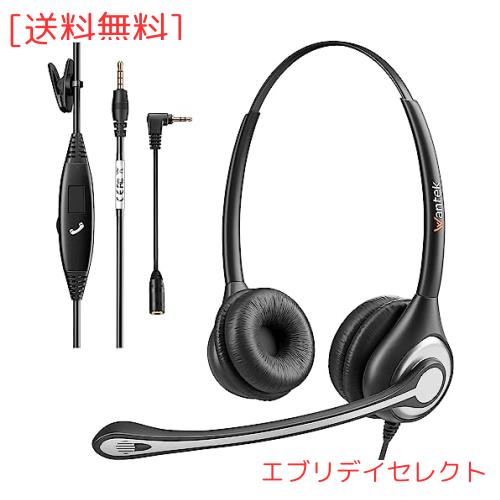 ヘッドセット携帯電話用3.5mm 両耳 ノイズキャンセリングマイク付きとコール制御PC用ヘッドホン Web会議、Skype、オフィス、在宅勤務、ビ
