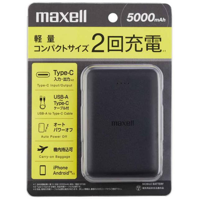 マクセル モバイルバッテリー 薄型コンパクトサイズ 5000mAh BK [3ポート] MPCCE5000