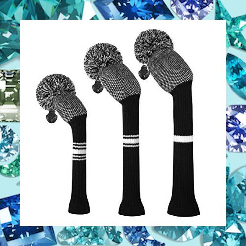 濃い色明るい色のストライプゴルフのニットヘッドカバー 、3枚セット 、ドライバー、フェアウェイウッドとハイブリッドut (Black and Whi