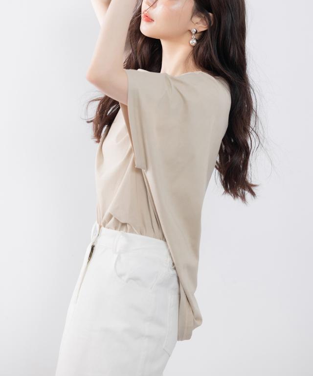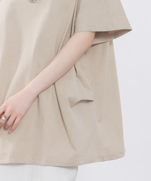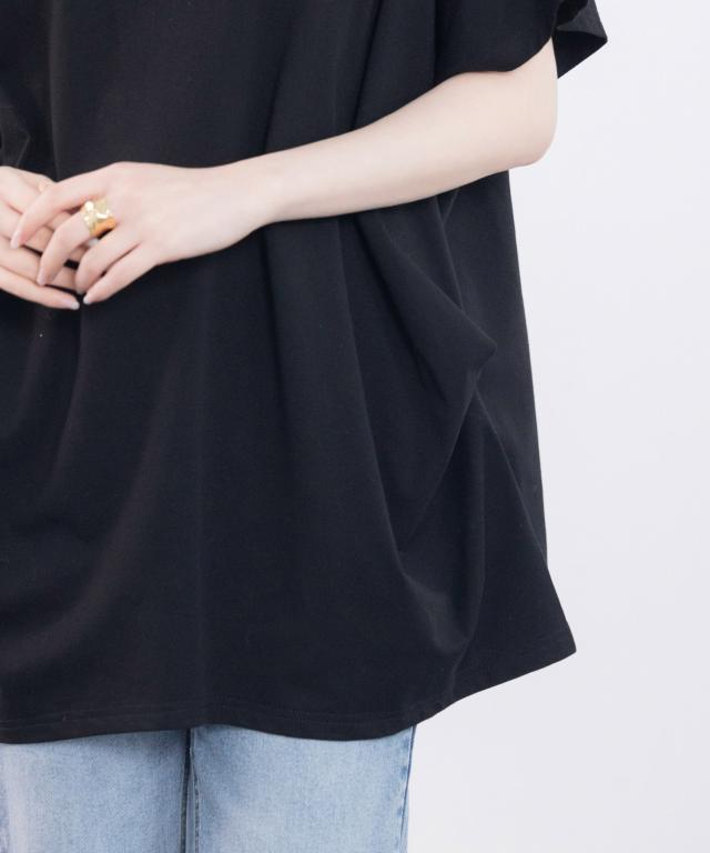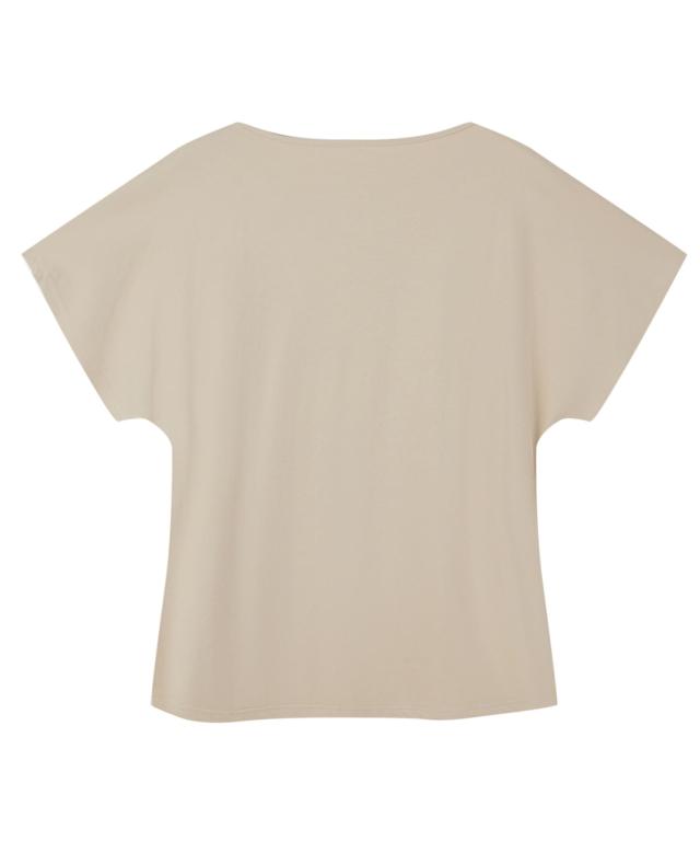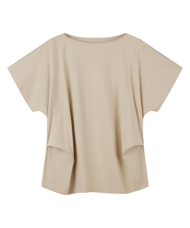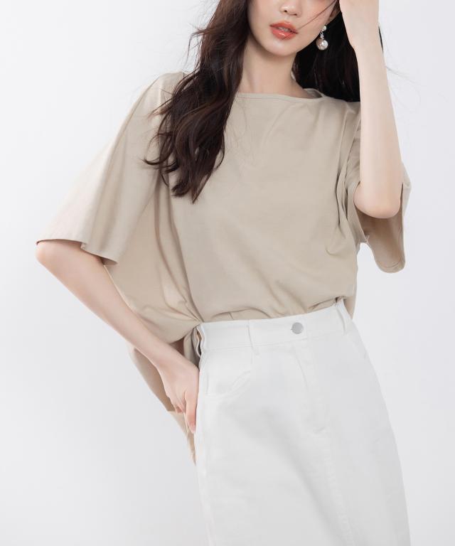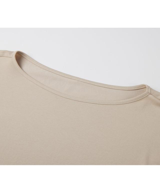 デコルテをきれいに見せる横広がりのボートネックデザイン。ボリューミーなカットソーを涼しげに見せてくれます。