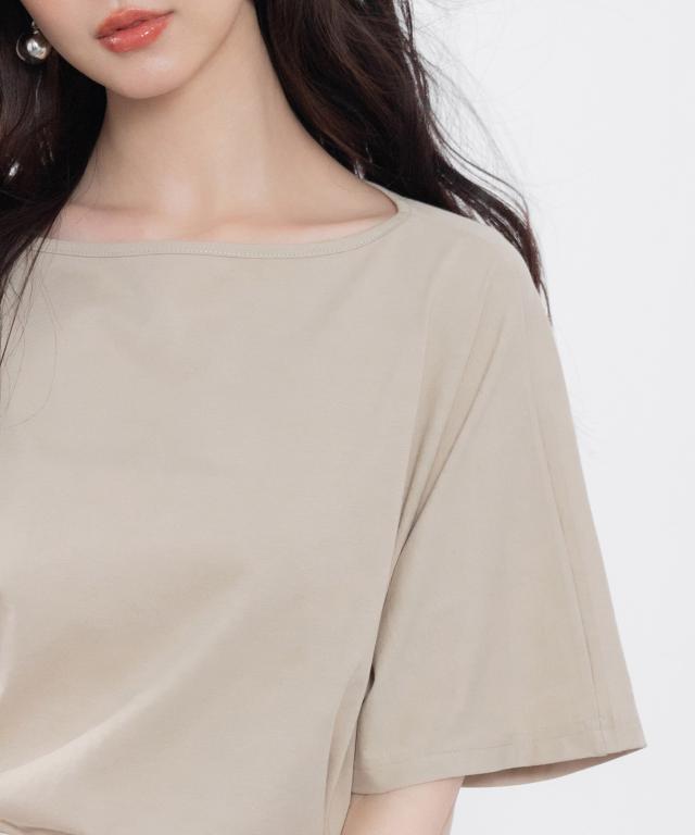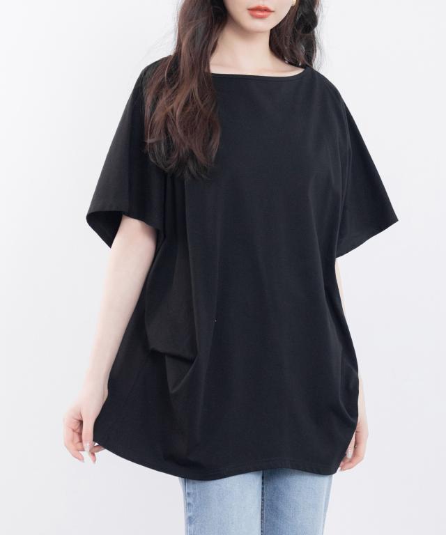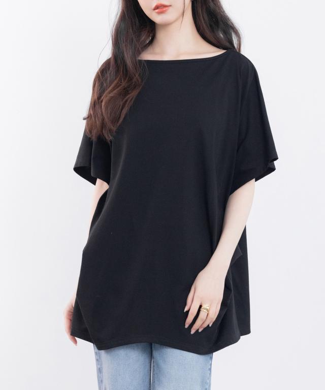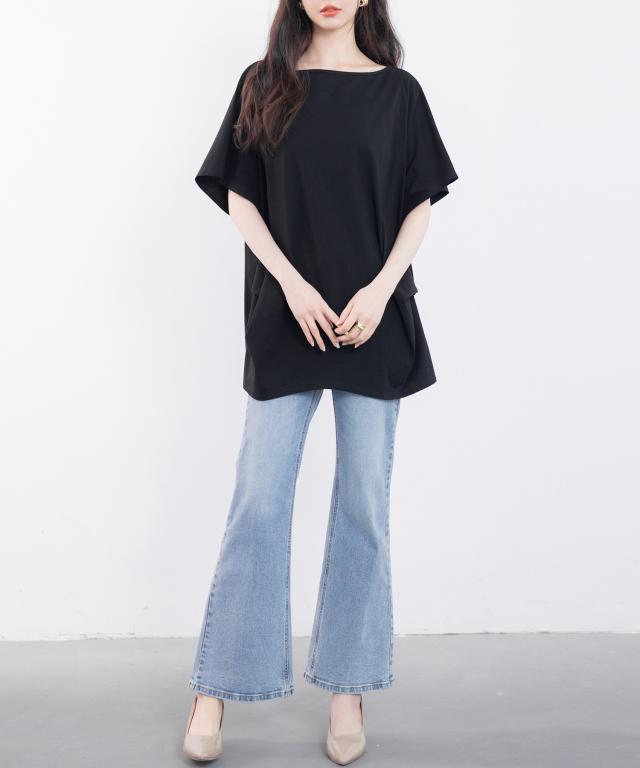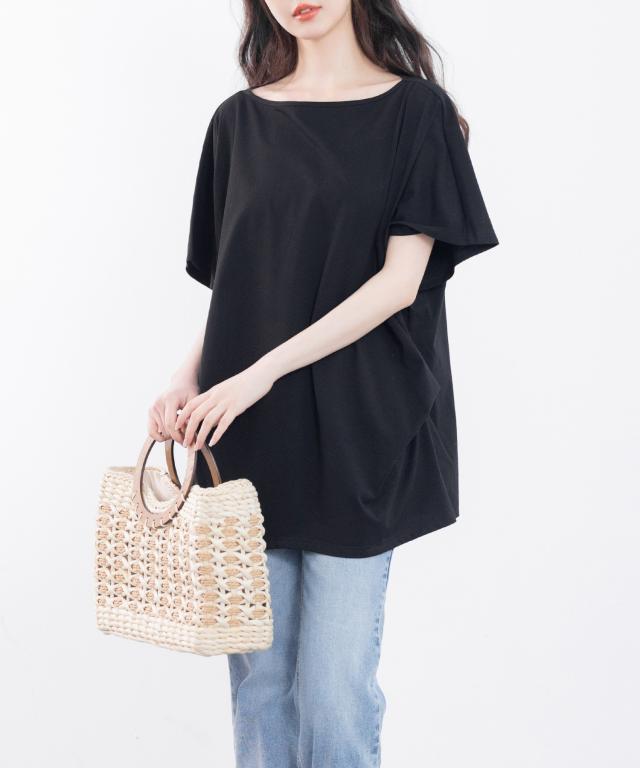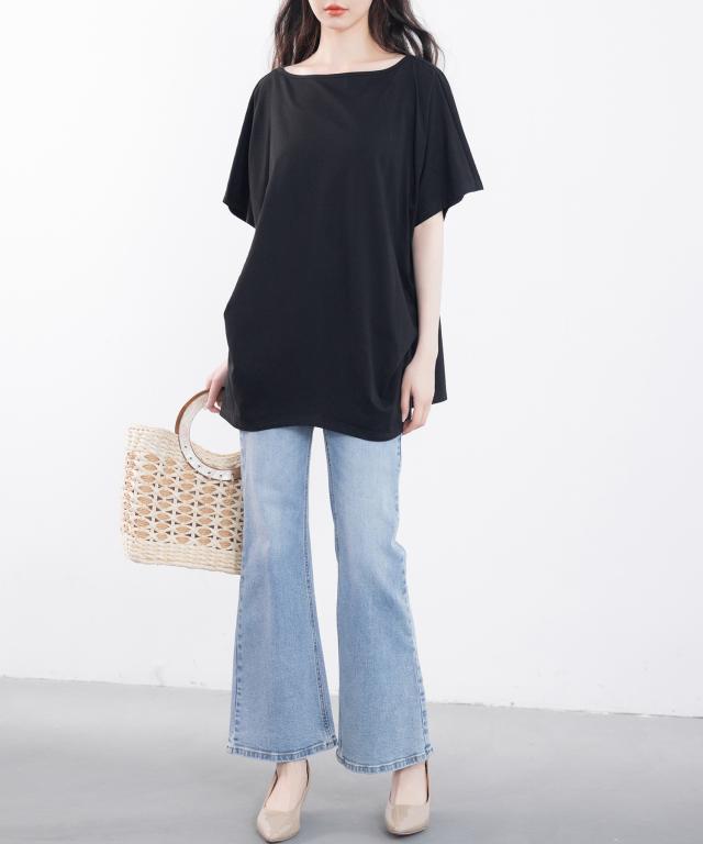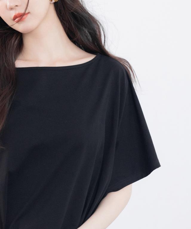 リラクシーな着心地と体型カバーを叶えるボートネックカットソーTシャツ。