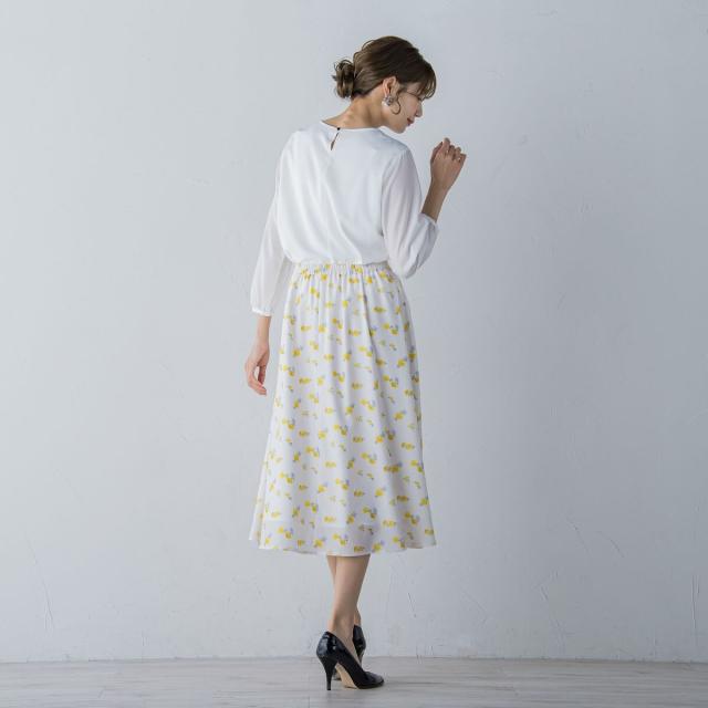 後ろウエストはゴム仕様でラクにお召いただけます。