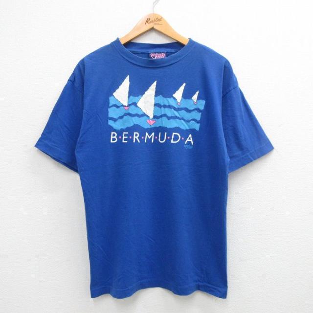 古着 ウィルソン 半袖 ビンテージ Tシャツ メンズ 90年代 90s ビッグロゴ コットン クルーネック USA製 青 ブルー XLサイズ 中 中古 古着