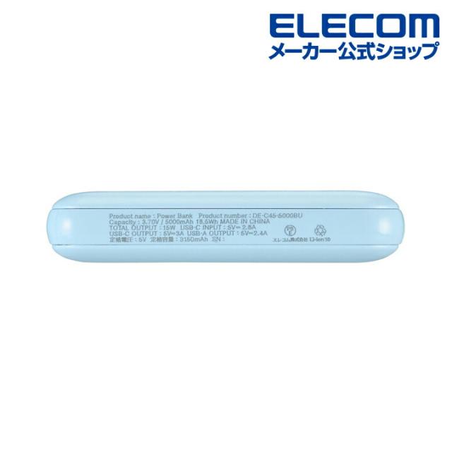 エレコム 薄型コンパクトモバイルバッテリー(5000mAh 小型/3A/C×1+A×1)┃DE-C45-5000BU