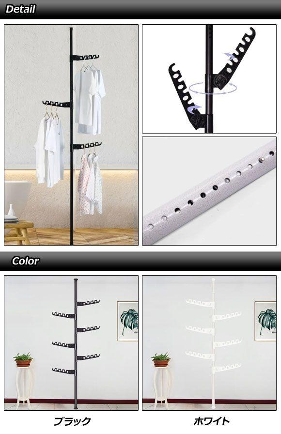 突っ張りポールハンガー つっぱりポールハンガー ポールラック 突っ張りラック ハンガーラック フック ハンガー つっぱり式 突っ張り式 突っ張り棒 つっぱり棒 伸縮 可動式 折りたたみ 360度 360° 洋服 衣類 帽子 カバン 鞄 バッグ 多機能 ステンレス ステン 金属 ABS リビング 玄関 ランドリー 洗面所 バスルーム 脱衣所 洗濯 乾燥 物干し 部屋干し 洗濯物 インテリア 収納 ディスプレイ ディスプレー 日用品 生活雑貨 雑貨 DIY 賃貸 オフィス 事務所 店舗 お店 4570107981275 4570107981282 黒 BLACK 白 WHITE 506457100