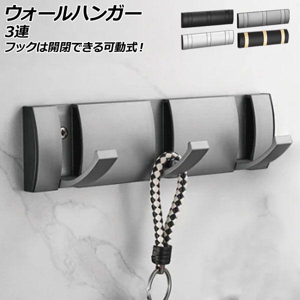ウォールハンガー 3連 アルミ製 フックは開閉できる可動式! 選べる4カラー AP-UJ0953-3