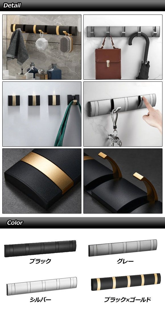 ウォールハンガー 3連 アルミ製 フックは開閉できる可動式! 選べる4カラー AP-UJ0953-3 カラー: ブラック グレー シルバー ブラック×ゴールド