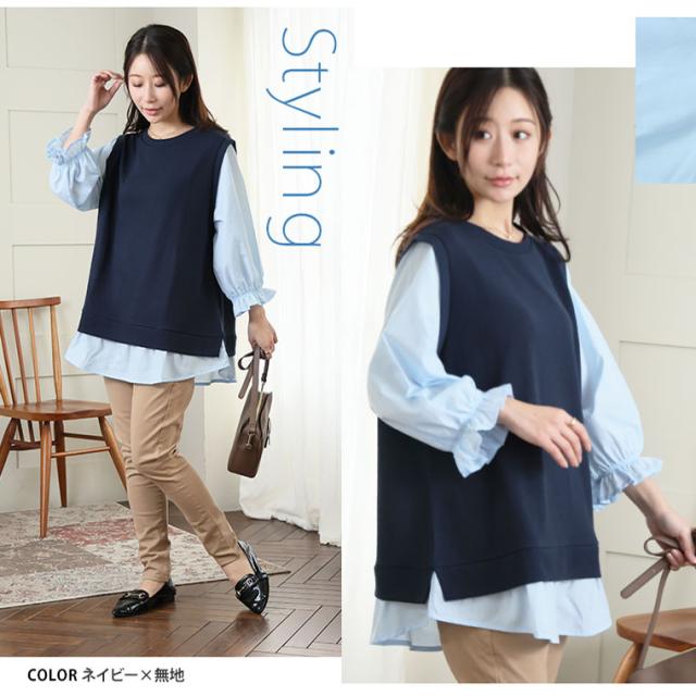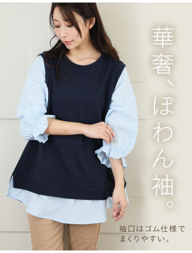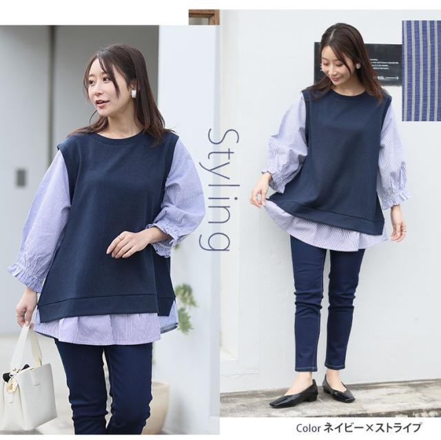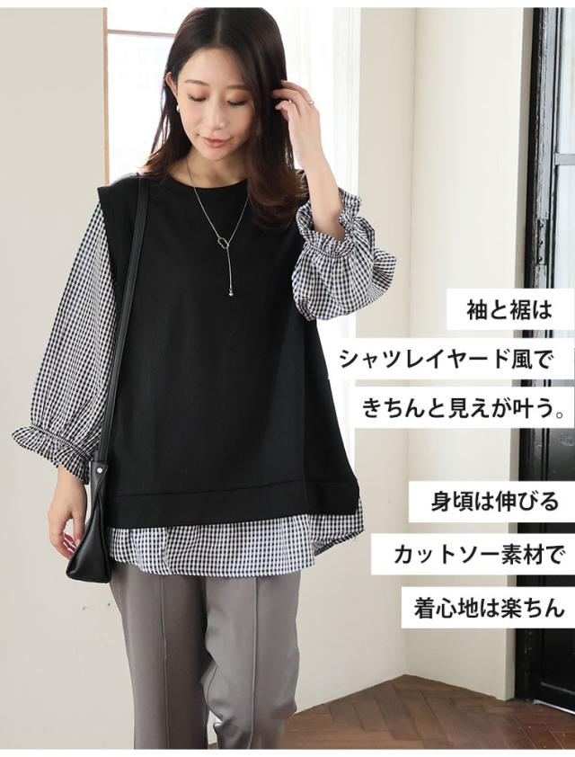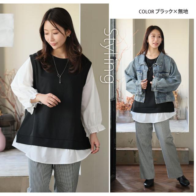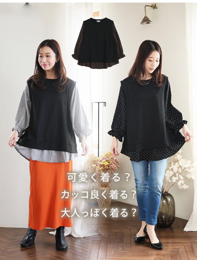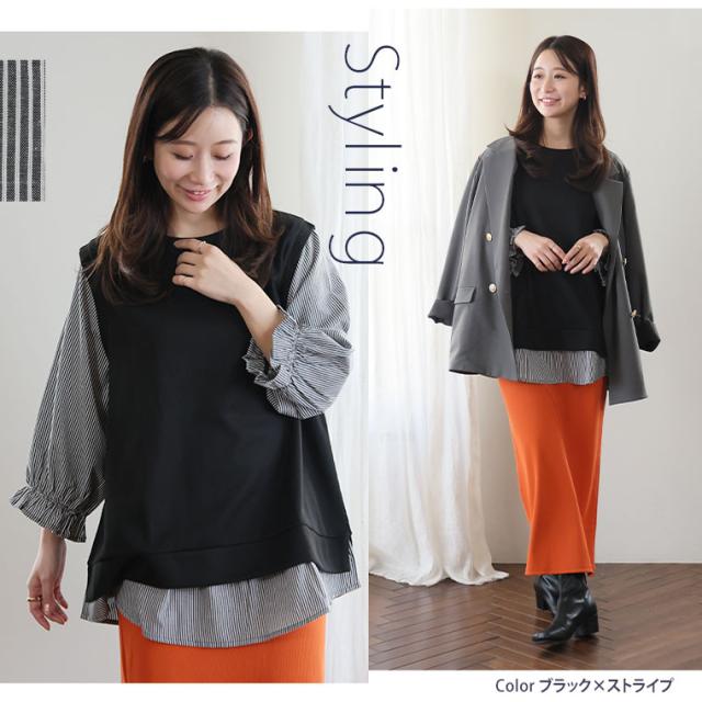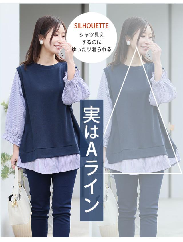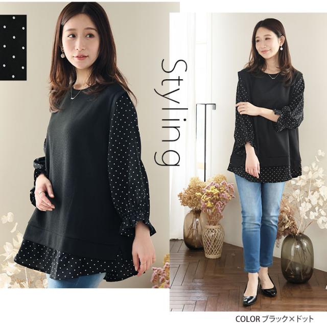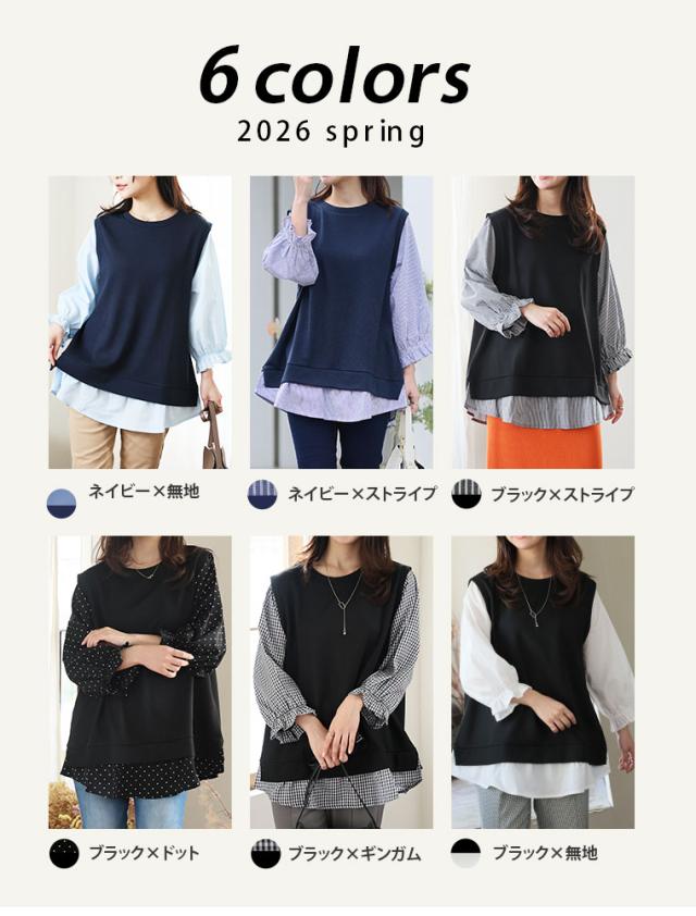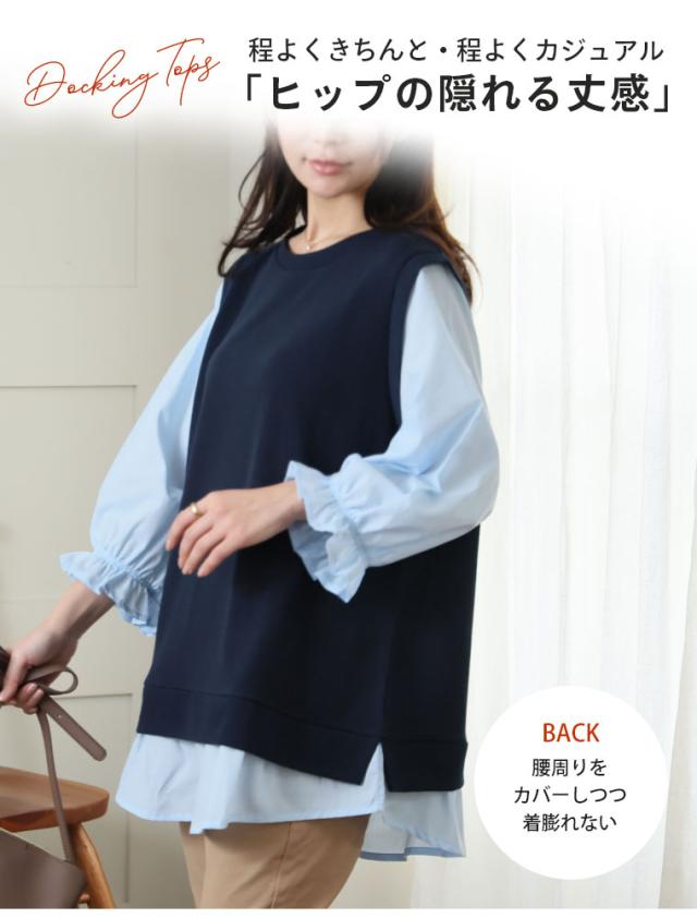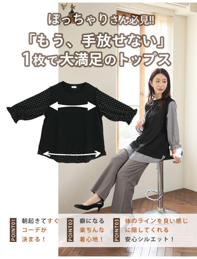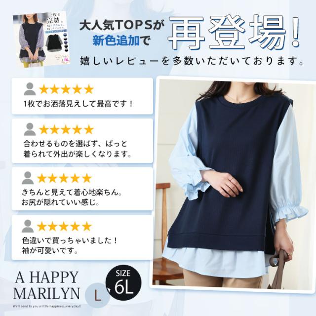 新作 大きいサイズ レディース トップス | 新色追加!! 華奢魅せ×お洒落 さっと着てパッと可愛い 1枚で完成 ドッキングトップス [861105] LL 3L 4L 5L 6L