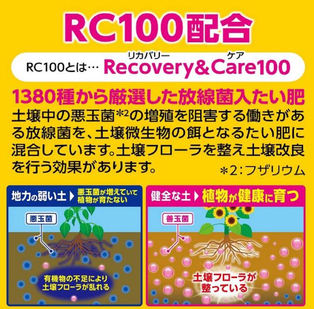 ●RC100(放線菌入たい肥)配合で土壌環境を改善!