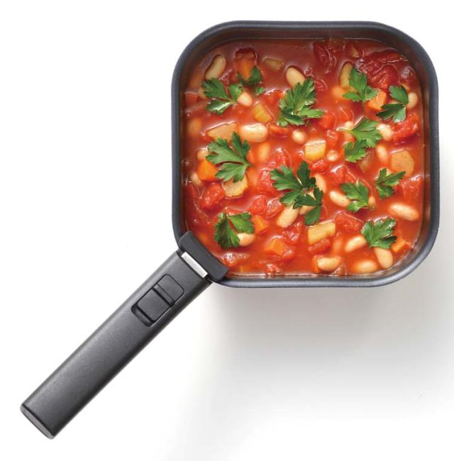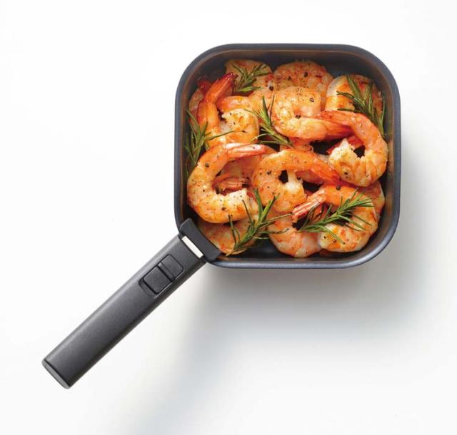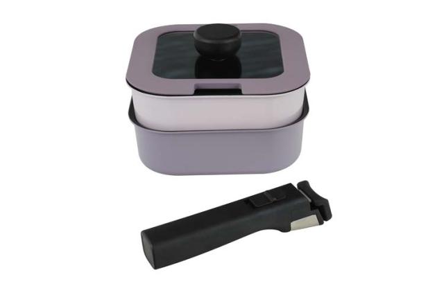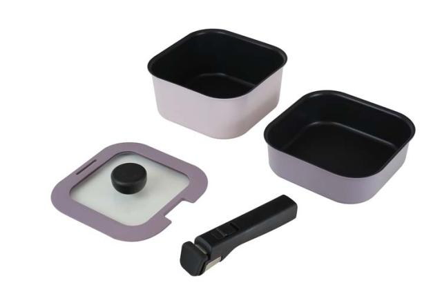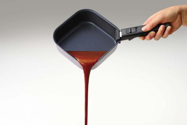 ●調理も収納もコンパクトにできるハンドルが取れる四角いおなべ