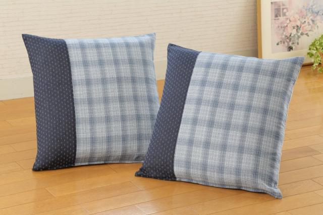 【座布団カバー】【しじら織】チェック柄 綿100% しじら織り座布団カバー(銘仙判)55x59cm