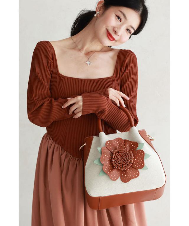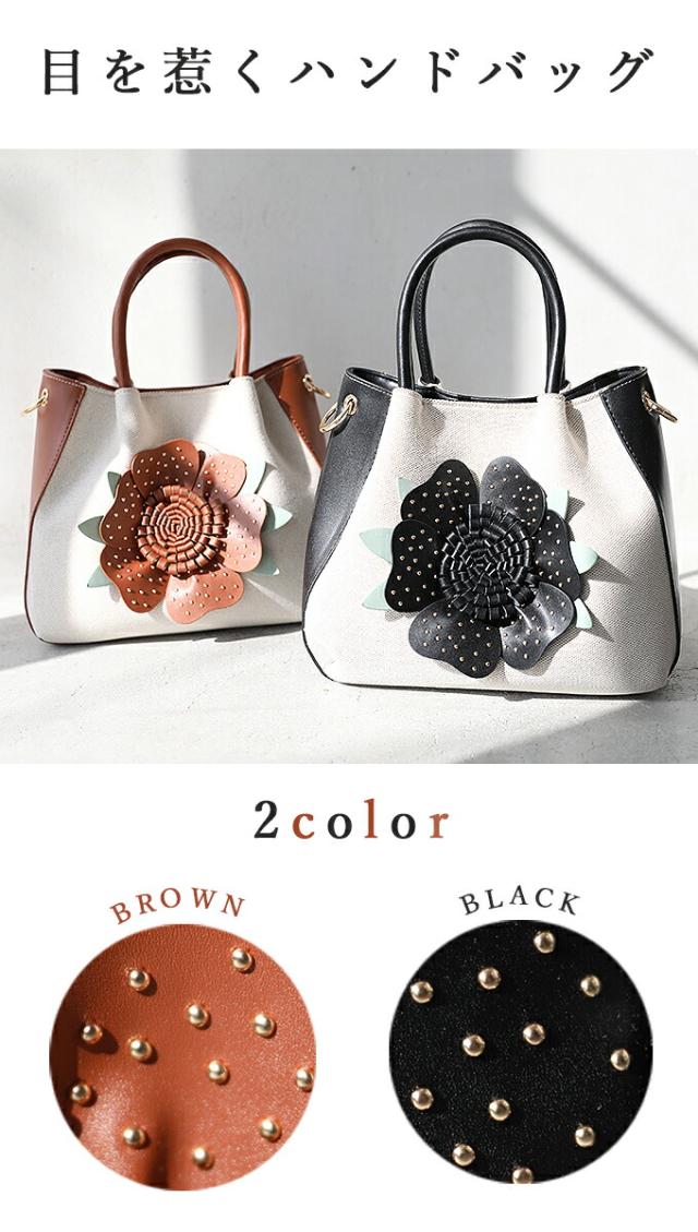 w60483ps 新作 新着 再入荷 CAWAII FRENCHPAVE フレンチパヴェ エレガント ベーシック カジュアル 可愛い かわいい カワイイ おしゃれ オシャレ お洒落 個性 個性的 定番 ベーシック 大人かわいい 大人可愛い 上品 女性らしい デザイン スタンダード ナチュラル きれいめ キレイめ シンプル フェミニン レディース レディースファッション 大人 ママ ミセス 30代 40代 50代 60代 ショルダーベルト付き 褒められ 立体花 ハンドバッグ ブラック 黒 黒色 ブラウン 茶色 オールシーズン 春 夏 秋 冬 春夏 秋冬 1年中 秋物 冬物 春物 夏 夏物 日常使い ヘビロテ おでかけ 旅行 家族旅行 女子会
