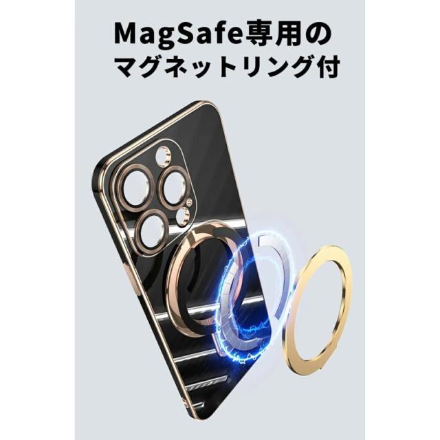 MagSafe専用のマグネットリング付き。対応のアクセサリーやモバイルバッテリーを素早く正確な位置に装着できます。