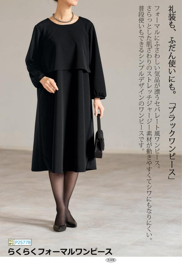 ワンピース レディース 日本製 らくらくフォーマルワンピース ブラック ひざ丈 婦人服 ミセス シニア 女性 黒 ブラックフォーマル シンプル ジャージー素材 礼服 礼装 セレモニー 膝丈 ひざ下丈 シニアファッション 40代 50代 60代 70代 80代 母の日 お母さん nss p25778