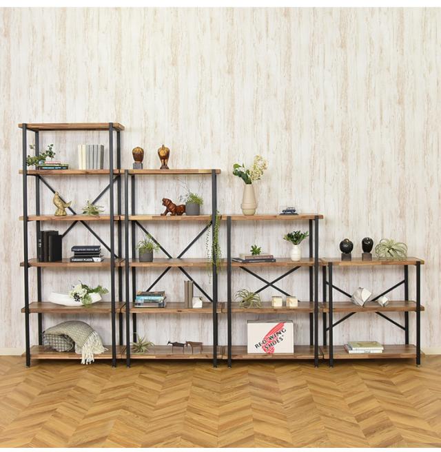 オープンラック 幅78cm 5段 シェルフ FJ-W78-5段 木目調 おしゃれ ヴィンテージ調 収納 収納家具 リビング収納 本棚 ラック ウッドラック ウッドシェルフ 木製棚板(代引不可)【送料無料】