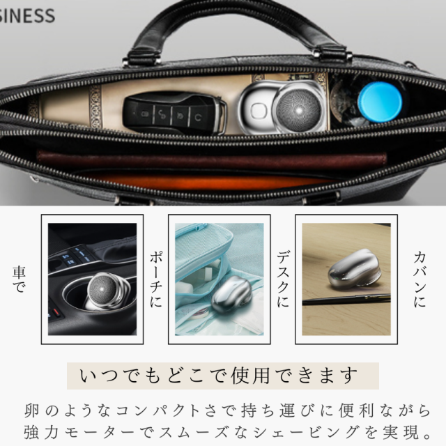 会議の前や旅行や出張で急な髭剃りができるように、オフィスや車、