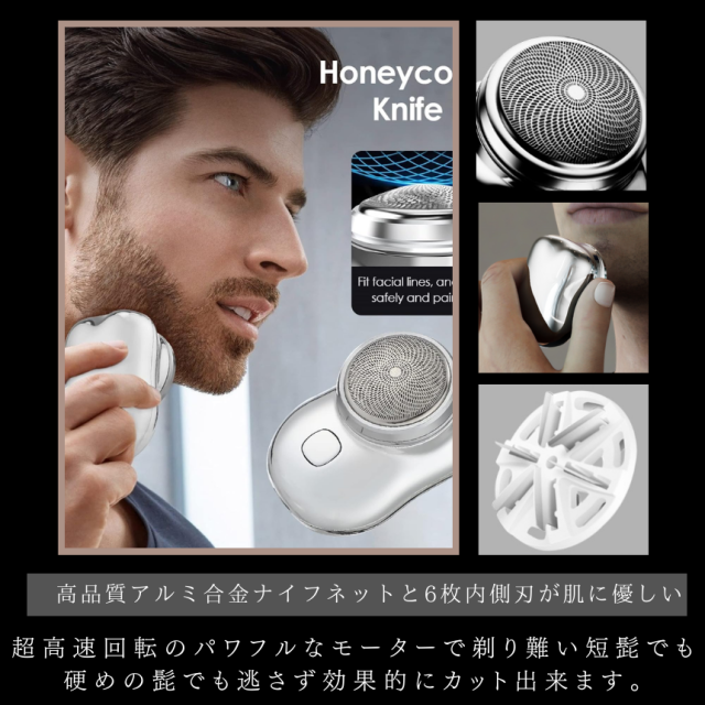 高品質アルミ合金ナイフネットと6枚内側刃が肌にやさしい。 超高速 回転のパワフルなモーターを 剃り難い短髭でも硬めの髭でも逃さず効果的にカット出来ます。
