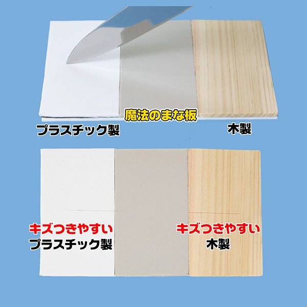・本製品は一般的なまな板に比べてキズがつきにくい素材ですが、包丁やナイフで強く切りつけたりするとキズがつきます。キズがつかないことを保証するものではありません。