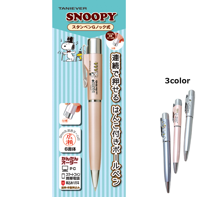 スヌーピースタンペンGノック式メールパック (ネーム印アフターオーダー) (印鑑付き はんこ付き ボールペン 9mm丸浸透ネーム印 )