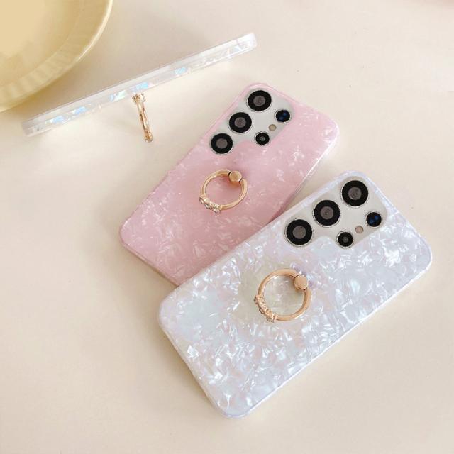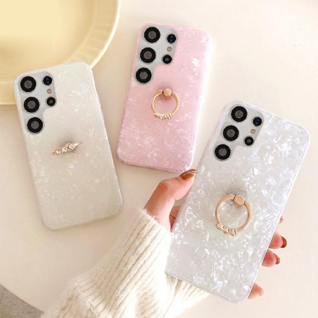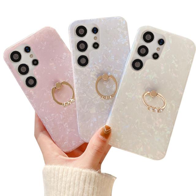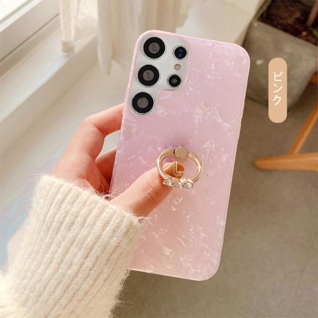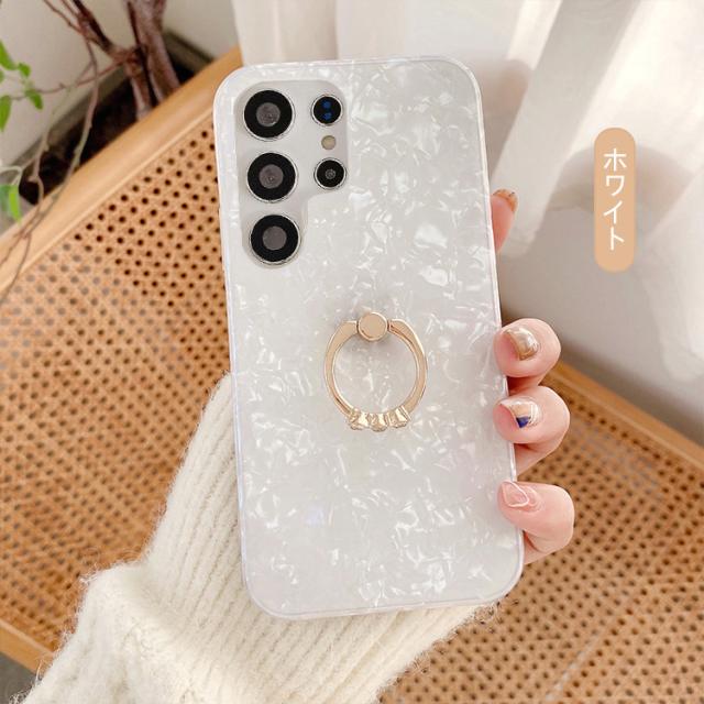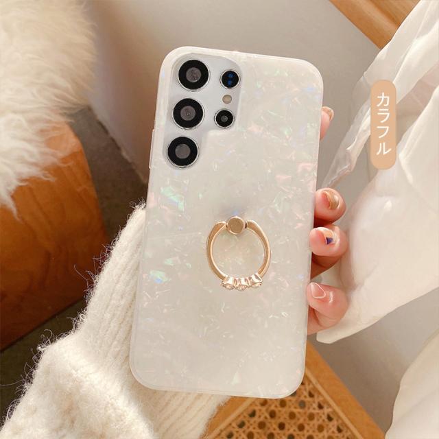 Galaxy S24 ケース/カバー S24+/S24 Ultra 耐衝撃 かわいい リング付き スタンド機能 ホログラム レディース シェル風 シンプル 保護ケース Samsung サムスン ギャラクシー S24/S24 プラス/S24 ウルトラ スマフォ/スマホケース/カバー