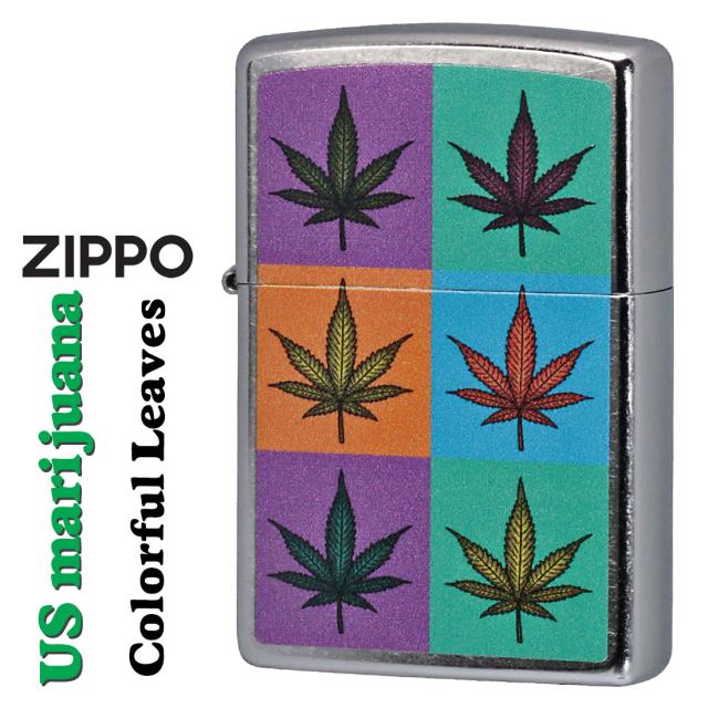 zippo ジッポー マリファナ Colorful Leaves カラフルリ-ブス 2024年 USモデル ストリートクローム Z207-112483 メンズ レディース おしゃれ ファッション 大麻 カラフル ギフト プレゼント メール便対応