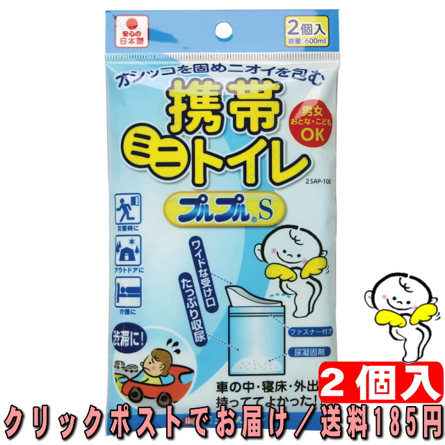 ケンユー 携帯ミニトイレ プルプルS 容量600ml 2個入 オシッコを固めニオイを包む