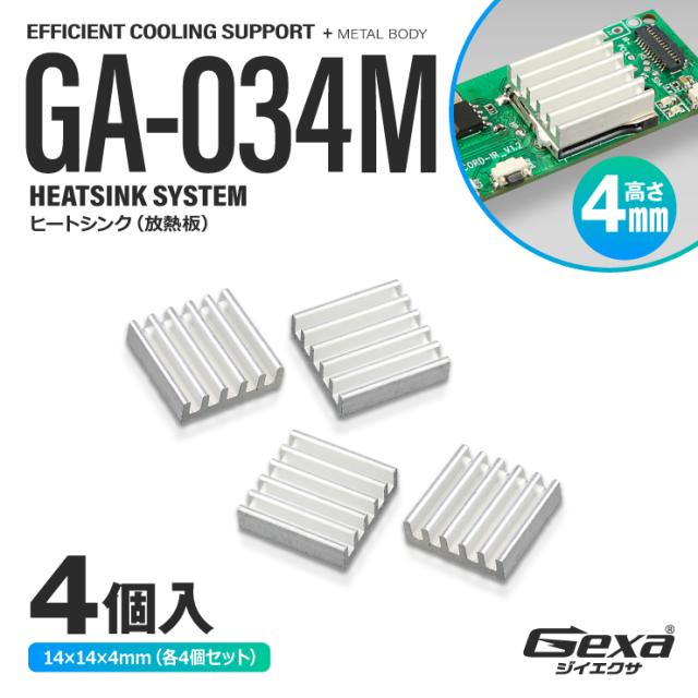 ジイエクサ Gexa ヒートシンク 14×14×高さ4mm 4個入 冷却フィン 熱暴走防止 熱伝導両面テープ付 GA-034M (ゆうパケット対応)