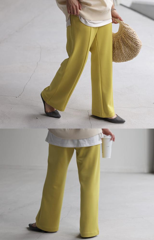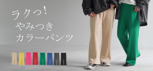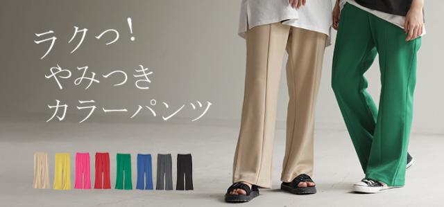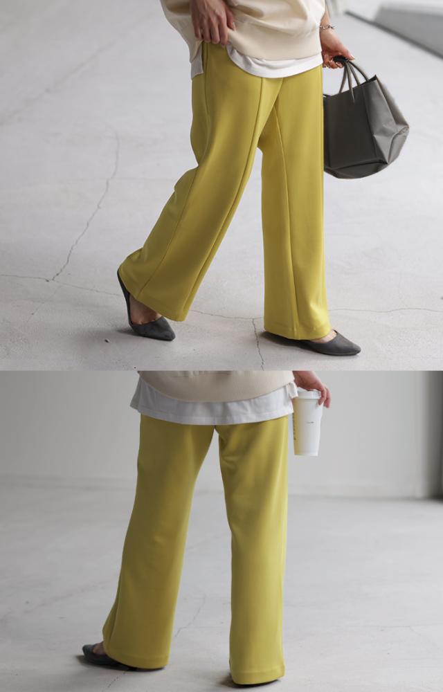 美シルエットなのにラクチンで快適な穿き心地のカラーイージーパンツです。