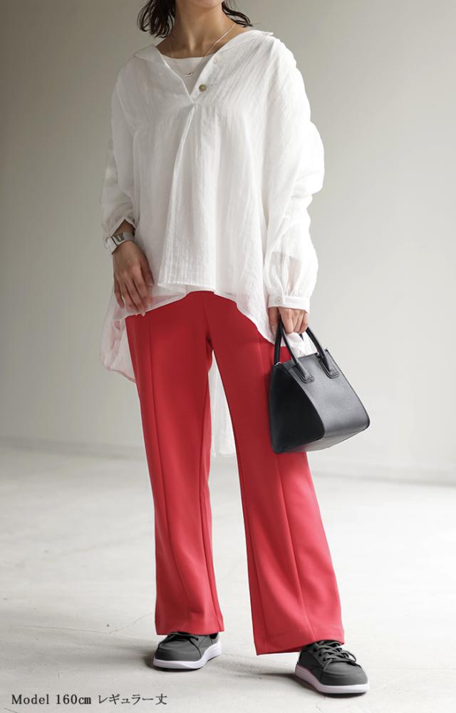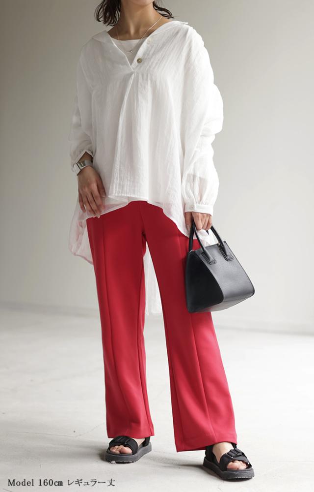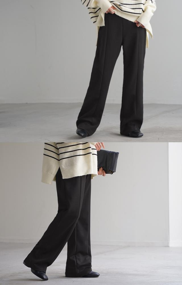 リラクシーなのに綺麗でセンタープレスの直線効果で脚長&美脚印象も◎。