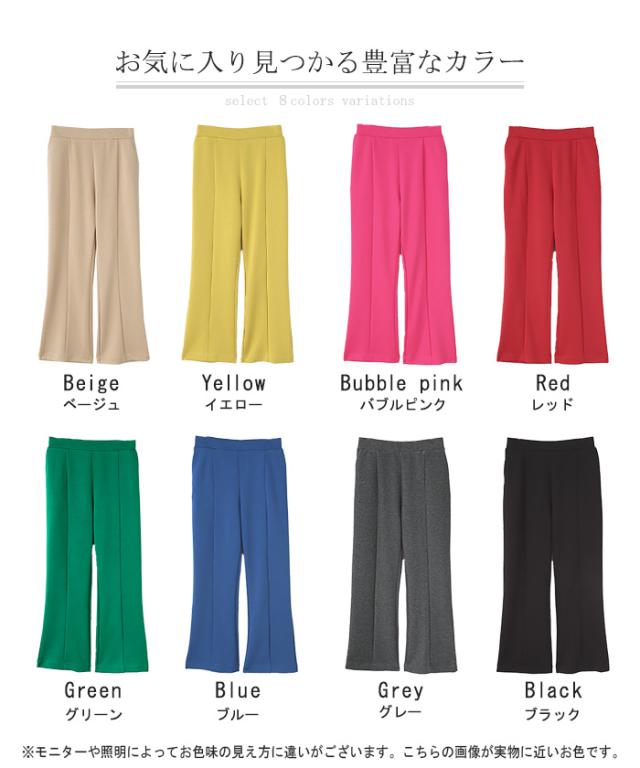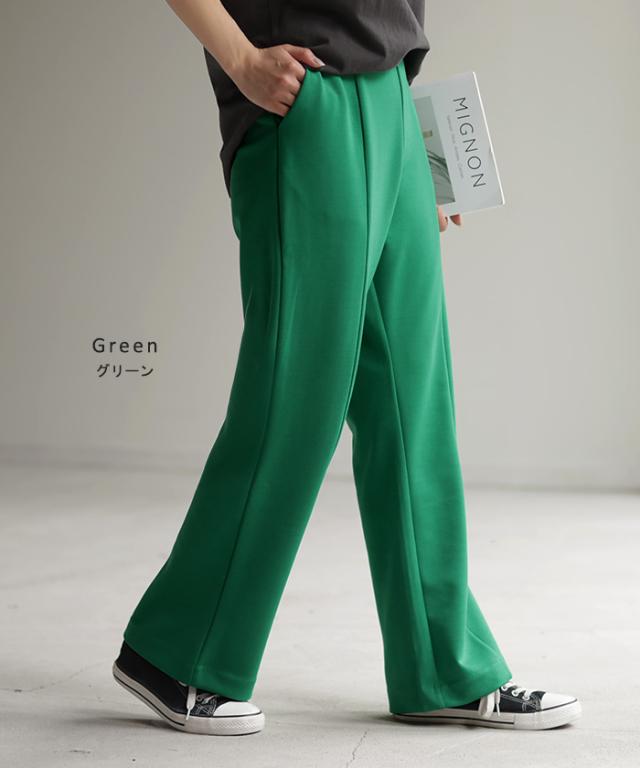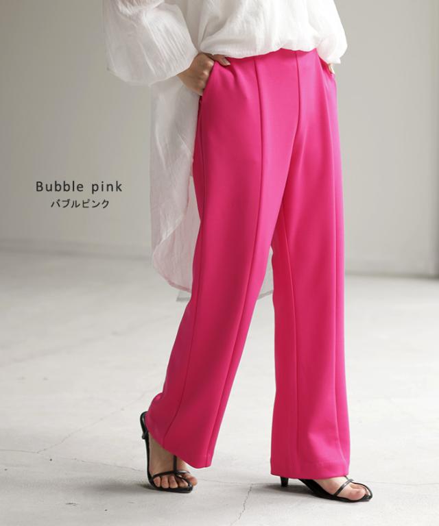 パンツ 超伸び カラーパンツ レディース センターライン スラックス ワイドパンツ ロング ジャージー 大きいサイズ ボトム 体型カバー ボトムス フレアパンツ ずぼん ズボン ハイウエスト グリーン ピンク ブルー ゴム 春 夏 緑 黒 きれいめ HUG.U 秋新作