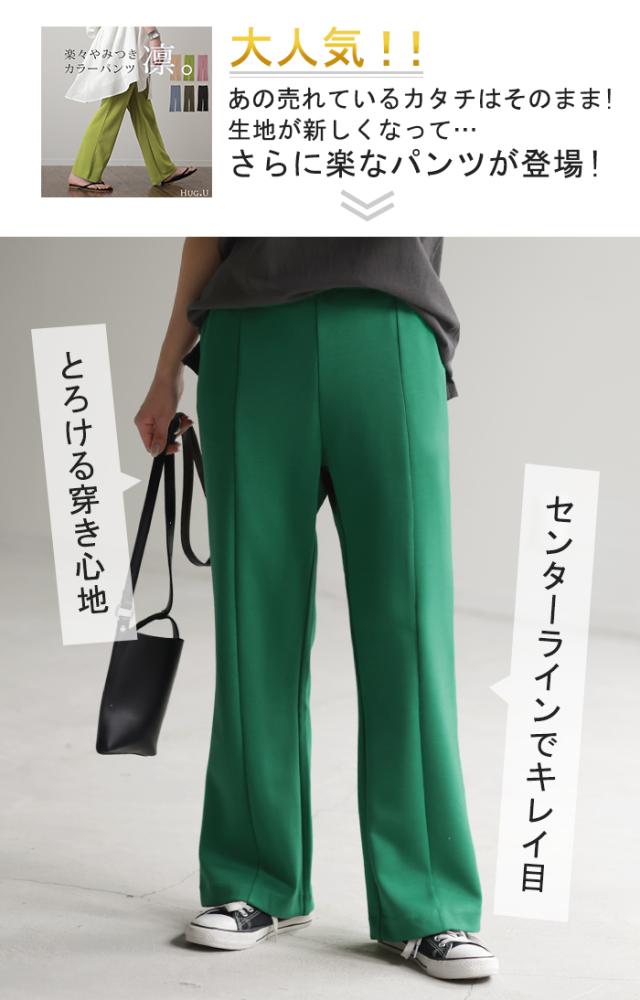 ストレッチ レギパン レギンス レギンスパンツ オフィス カラースラックス 高身長 低身長 ロングパンツ ストレートパンツ カラーパンツ センタープレス フレアパンツ セミフレア セミフレアパンツ スラックスパンツ ポンチ ポンチパンツ ジャージーパンツ ジャージー素材 イージー イージー素材 楽 リラックスパンツ リラックスボトム ワイドパンツ ハイウエスト ハイウェスト ストレスフリー ハイウエストパンツ ハイウェストパンツ ストレート ロング丈 長い 長め 長ズボン 長ずぼん ポケット 無地 伸びる 伸縮性 伸縮 ストレスフリー ゴムウエスト ゴムウェスト ウエストゴム ウェストゴム ゴム ゆったり ゆる ゆったりサイズ ラクチン らくちん 楽ちん 動きやすい 部屋着 パジャマ ルームウェア ワンマイルウェア グリーン ミドリ 緑 緑色 ブルー 青 青色 イエロー キイロ 黄 黄色 ピンク バブルピンク ピンク色 ベージュ ライトベージュ レッド レット 赤 赤色 グレー メランジグレー 灰 灰色 ブラック 黒 黒色 レディースファッション 華奢見え 脚長 脚長効果 美脚 美尻 お尻 細見え 着やせ 着痩せ トール丈 トール トールサイズ レギュラー丈 レギュラー レギュラーサイズ 短め 短い レイヤード 重ね着 重ね レイヤードコーデ プラスサイズ ビッグ ビック big ビックシルエット ビッグシルエット ビックサイズ ビッグサイズ オーバーサイズ オーバー 着痩せ 大き目 大きい 大きめ フリーサイズ フリー S M L LL 2L XL 3L XXL LLL ランチ デート お出かけ キャンプ アウトドア フェス リゾート ビーチ 海 旅行 飛行機 カジュアル ナチュラル 大人カジュアル ベーシック オフィスカジュアル テレワーク リモートワーク リモート オンライン飲み会 おうち時間 お家時間 着回し 母の日 プレゼント ギフト 贈り物 クリスマス シンプル 大人 大人カジュアル オトナ 女性 綺麗 綺麗目 きれい キレイ キレイめ キレイメ きれいめ 高見え 上質 上品 レディースファッション 20代 30代 40代 50代 おしゃれ お洒落 オシャレ 可愛い かわいい カワイイ カッコいい 格好良い カッコイイ 春 夏 秋 冬 春夏 秋冬 HUG.U HUGU ハグユー はぐゆー