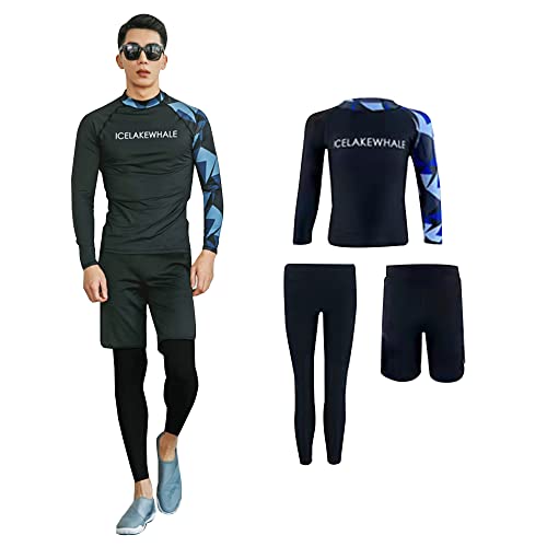[YFMAYI] ラッシュガード メンズ 水着 長袖 レギンス サーフパンツ フィットネス UVカット 吸汗速乾 水泳 水陸両用 大きいサイズ 3点セ