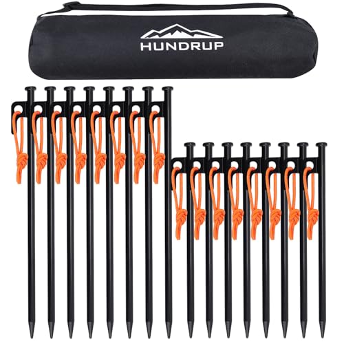 HUNDRUP【強化版】 ペグ 25cm/30cm/40cm 10本/16本 ペグセット 鍛造ペグ レーザー溶接 反射材入りロープ スチール ソリッド 収納ケース付