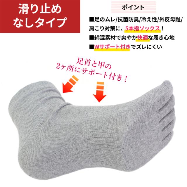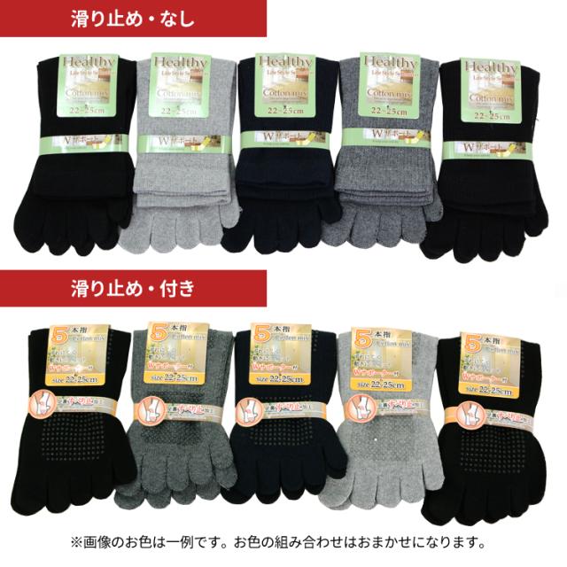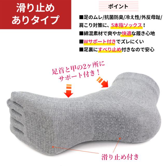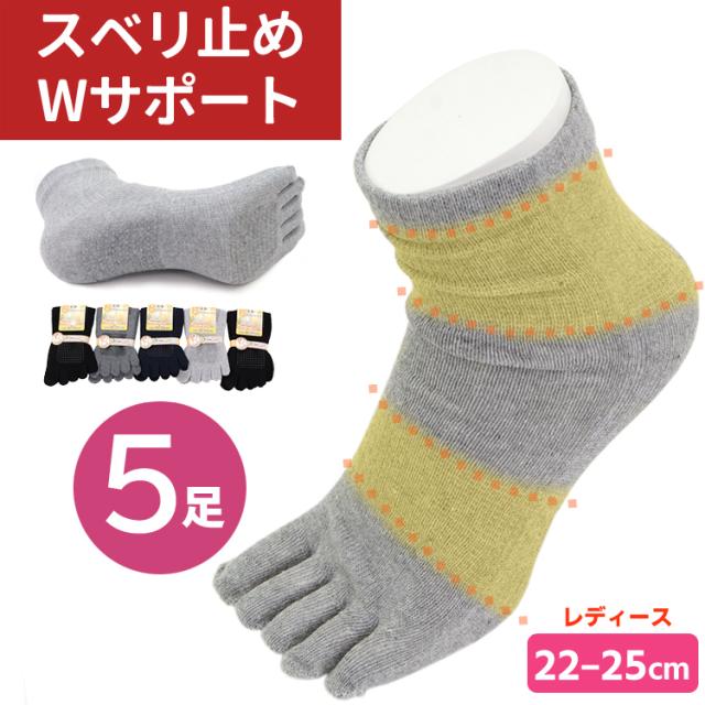 5本指ソックス 靴下 レディース 5本指健康ソックス 5足セット スベリ止め 22-25cm 婦人用 5本指 黒 無地 【メール便送料無料】 綿混素材 抗菌 防臭 冷え性 外反母趾 予防 冷暖房対策 スポーツ アウトドア 足首と甲の部分にダブルサポーター付き agesugi_sfa