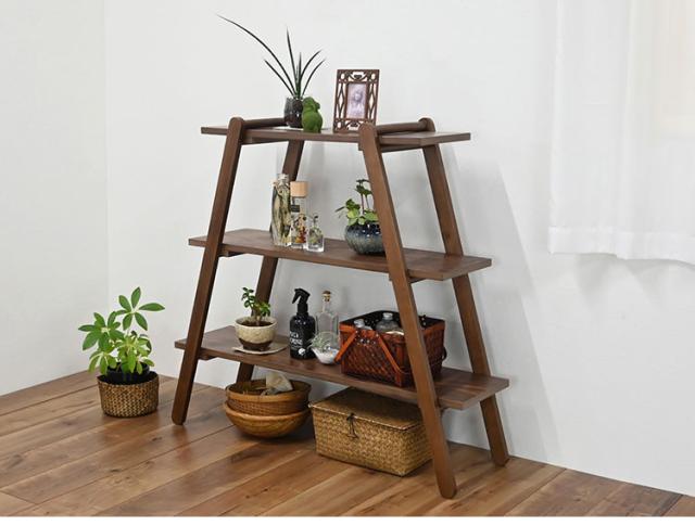 オープンラック3段 幅89.5cm 奥行27cm 高さ83.5cm 簡単組立て 工具不要 天然木 ウォールナット ナチュラル シンプル(代引不可)【送料無料】