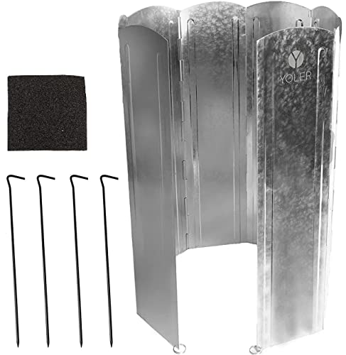 ヨーラー(YOLER) 大型風防板 ウインドスクリーン 風よけ キャンプ 焚き火 リフレクター 陣幕 折り畳み式 8枚連結 高さ60cm リング付 ペグ