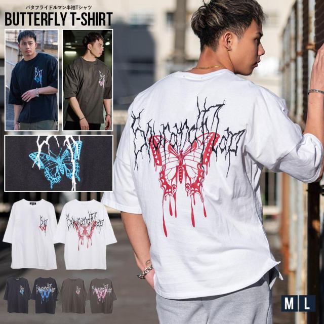 セール SALE Tシャツ メンズ ブランド 半袖 半袖Tシャツ 白T 白シャツ 大きいサイズ ストレッチ 伸縮性 ドルマン プリント 刺繍 バタフライ 蝶 ホワイト ブラック チャコール 白 黒 大人 カジュアル ストリート系 CavariA ユニセックス 春 夏 M L 郵 即日発送 [CANG24-24]