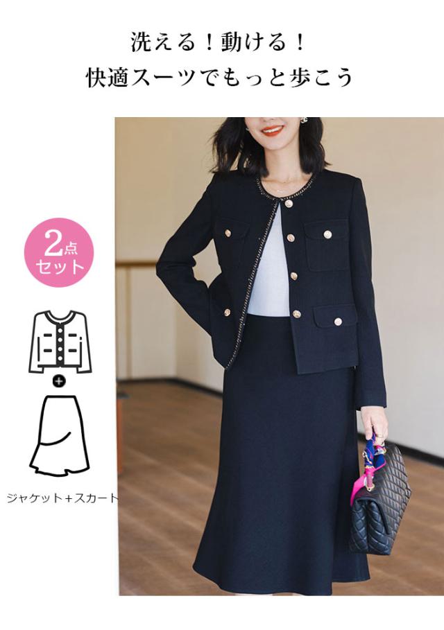 レディース スーツ スカートスーツ ママスーツ 入学式 卒業式 母 黒 セレモニースーツ セットアップ 通勤 卒園式 入園式 結婚式 ビジネス 仕事